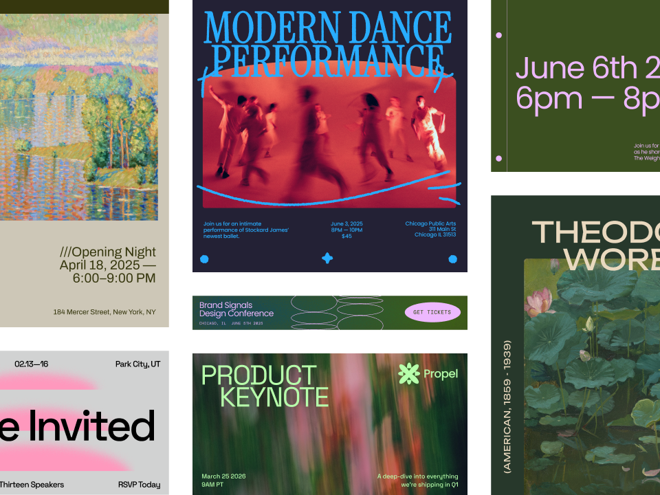 Share templates with your organization so anyone can quickly create social media assets, display ads, one-pagers, and more.